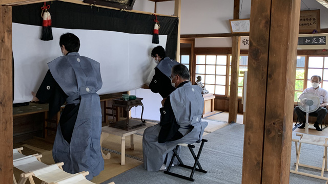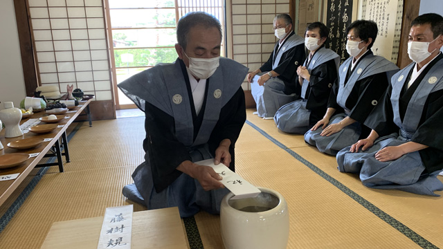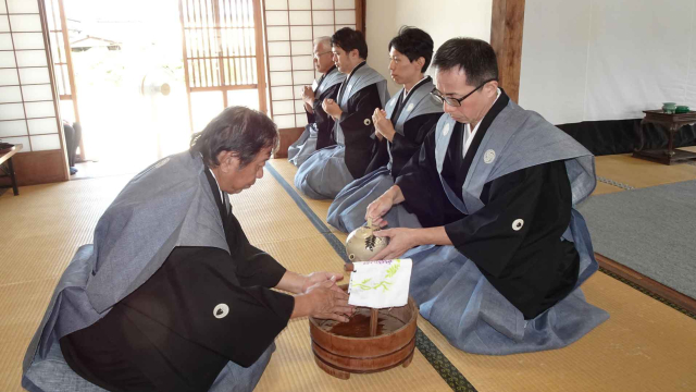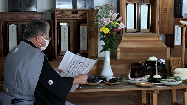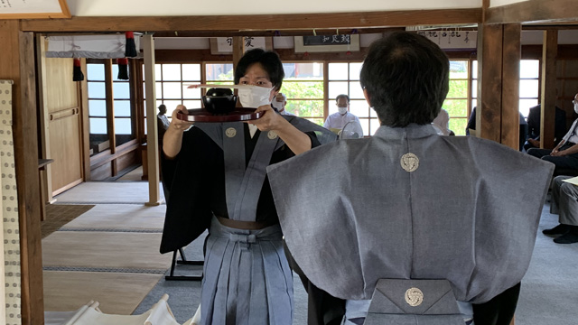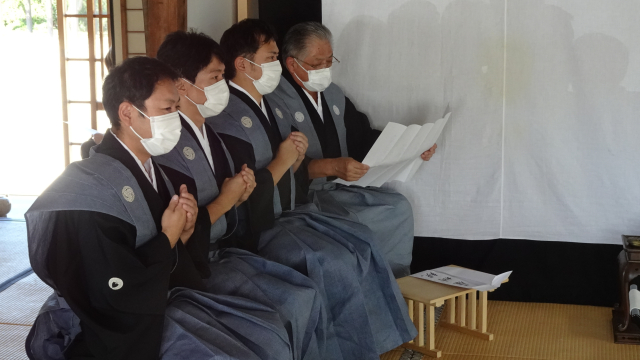 わが国では珍しい(中国の宋の時代に書かれた儒家の礼儀作法の本)により執り行われています。昭和55年(1980年)、市町村合併前の安曇川町から無形民俗文化財に指定されました。 藤樹先生の命日は明治6年1月1日から採用された太陽暦では元年(1648年)10月11日です。この日は太陰暦(旧暦)の慶安元年(1648年)8月25日に当たるので、儒式祭典は、太陽暦変更後も8月25日に行われていました。暦の変更や学校行事の一環として児童が参拝できるようにとの配慮から明治11年(1878年)から、ひと月遅れの9月25日に執り行われるようになりました。以後、9月の例祭として上小川村人により厳かに執り行われてきています。それまで祭典の形式はの形で受け継がれてきましたが、明治30年(1897年)の250年祭の時に京都のと氏の助言指導を受け、現行の形に定まりました。